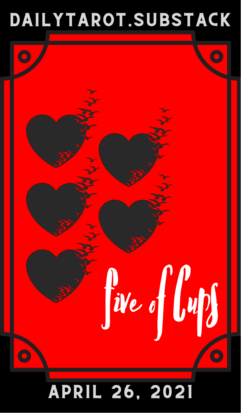 The Five of Cups suggests loss, bereavement, and regret.